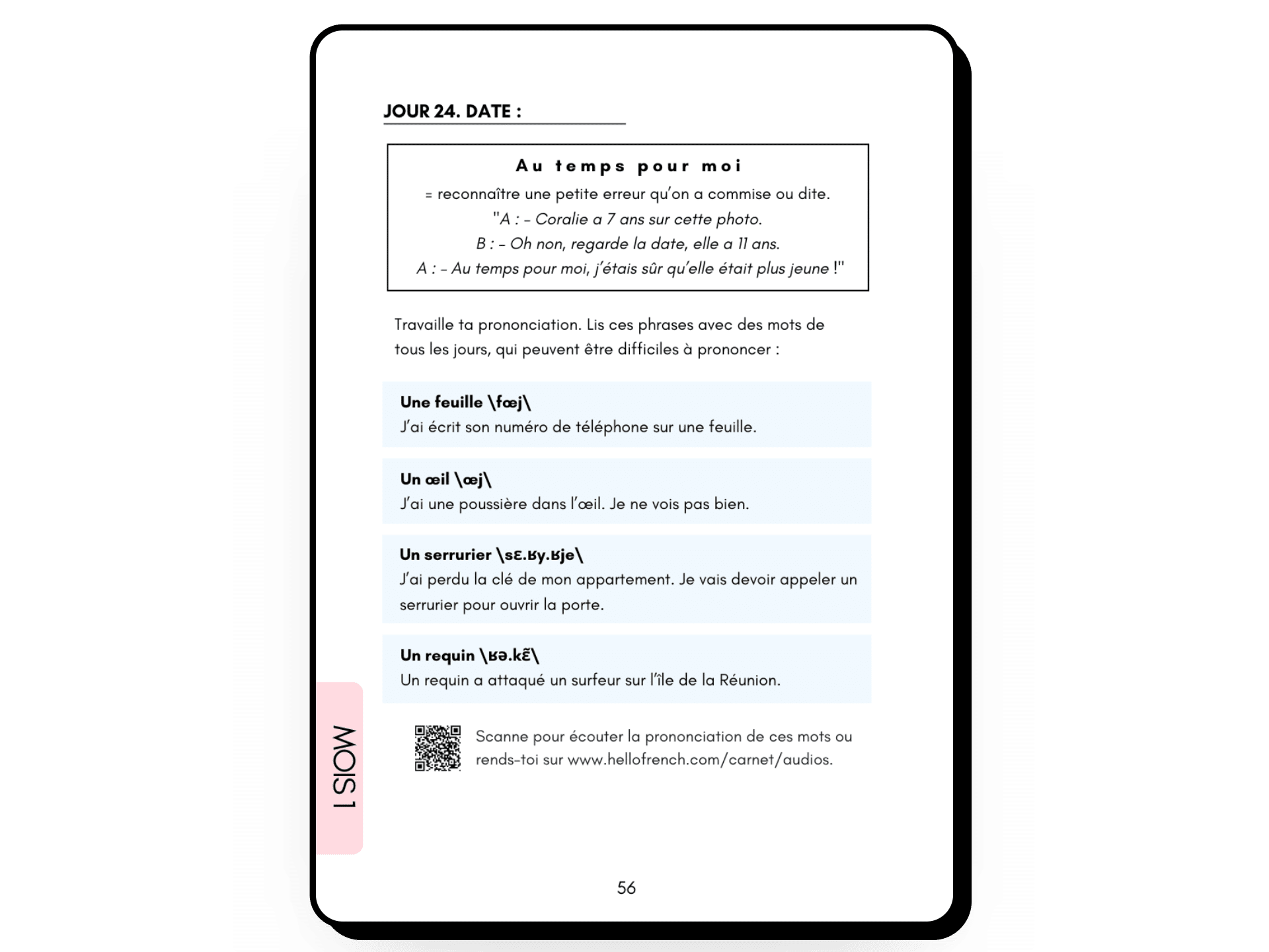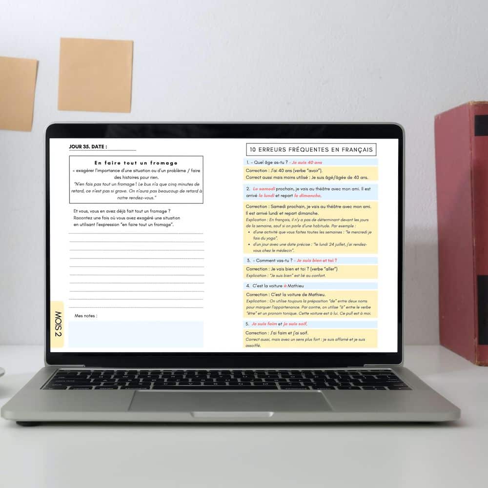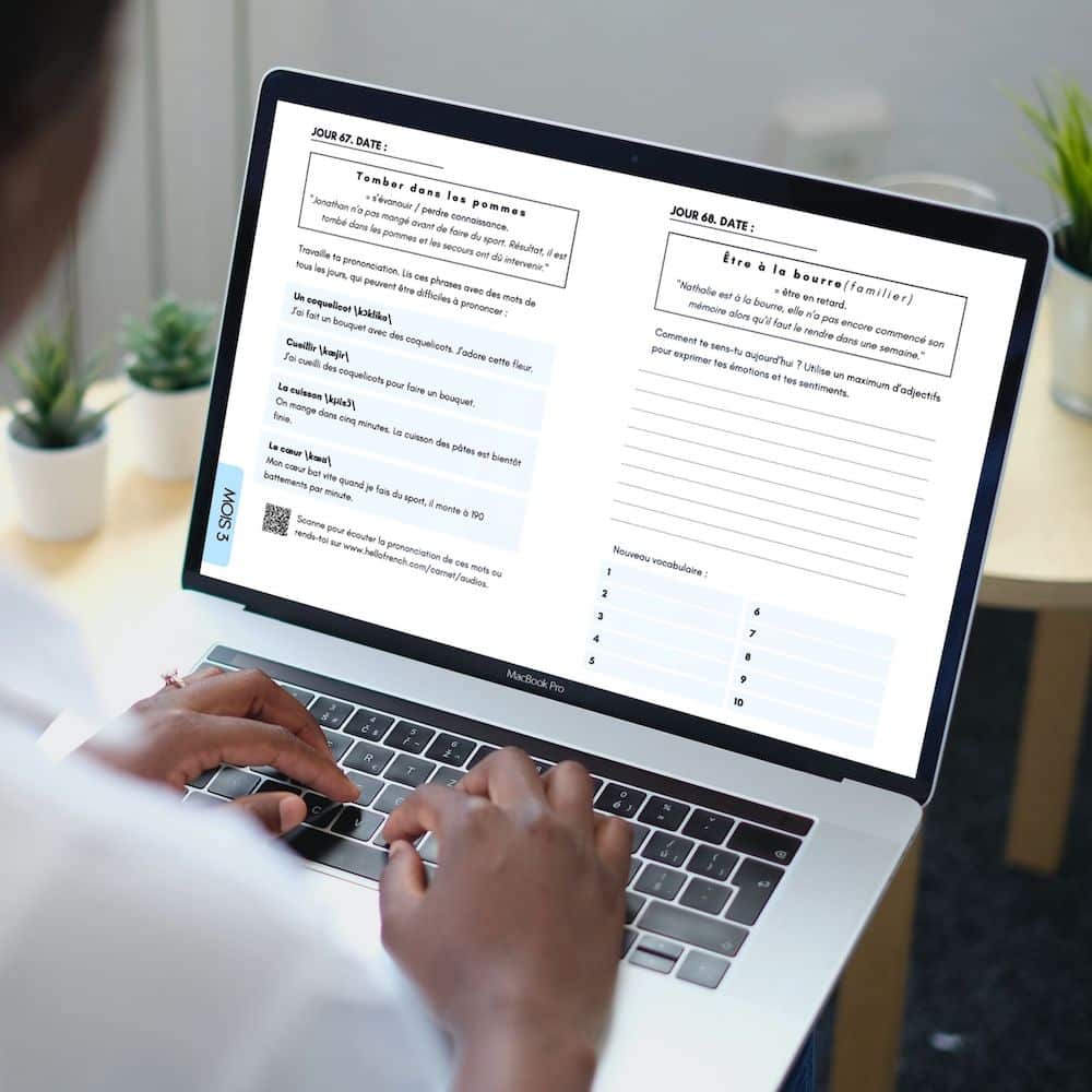 Ce carnet te fait pratiquer ton français tous les jours pendant 3 mois. Je suis sûre de son efficacité pour te faire progresser.